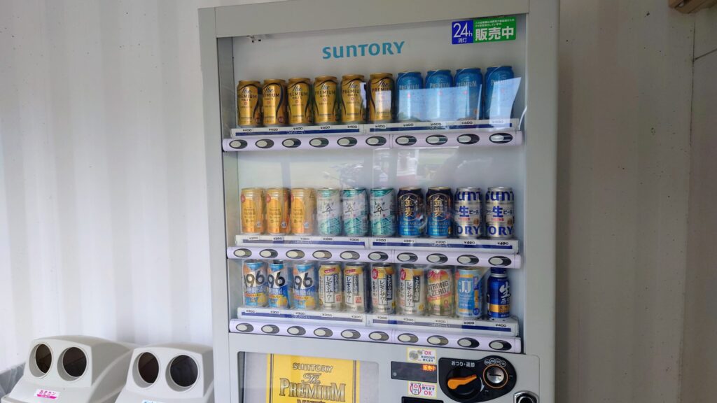 敷地内には自動販売機が設置されていますが、現金のみ対応となっています。ICカードやホルダー決済には対応していませんので、小銭のご用意をおすすめします。