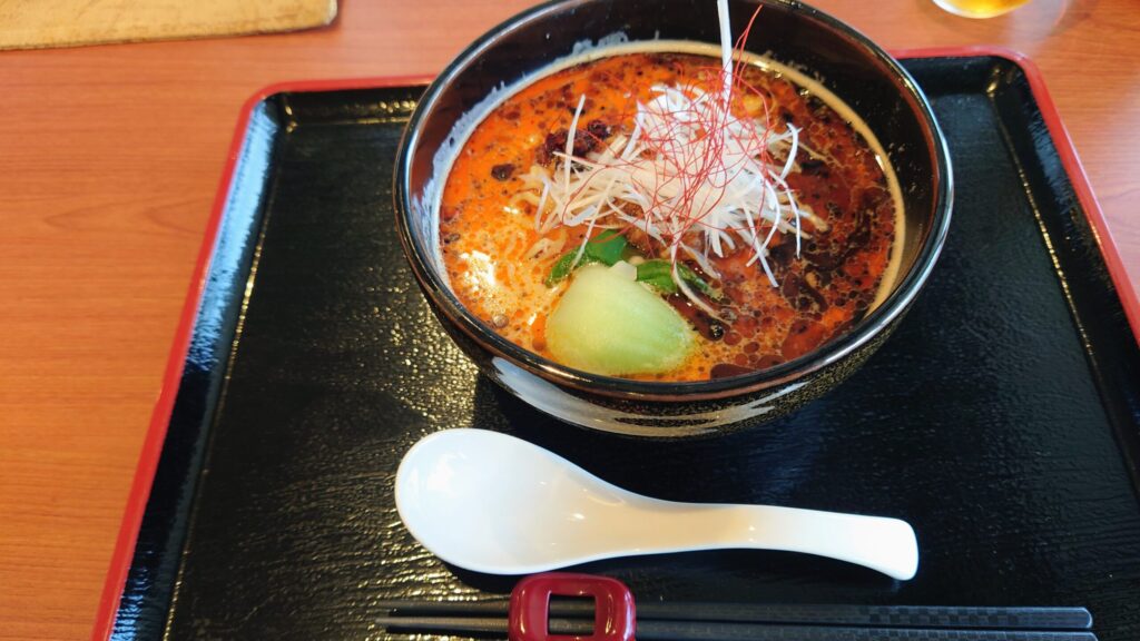 ランチタイムにいただいた「赤と黒の担々麺」もおすすめメニューのひとつ。