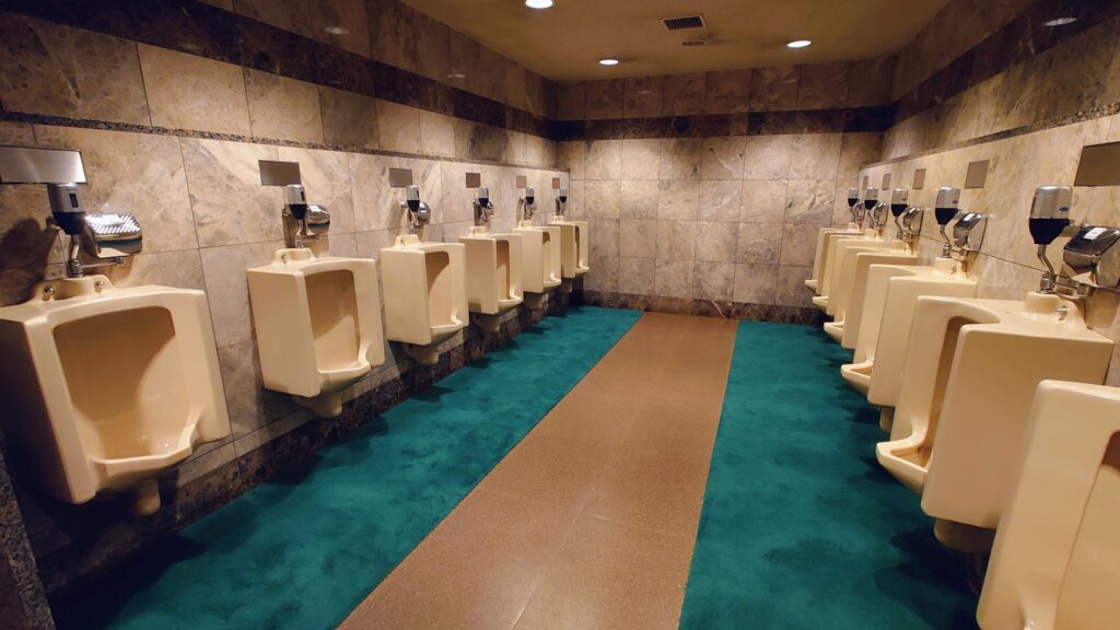 床の青い柄と色合いがクラブハウス全体の雰囲気にぴったりマッチしていて、とても素敵でした。