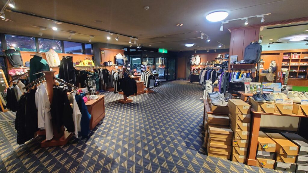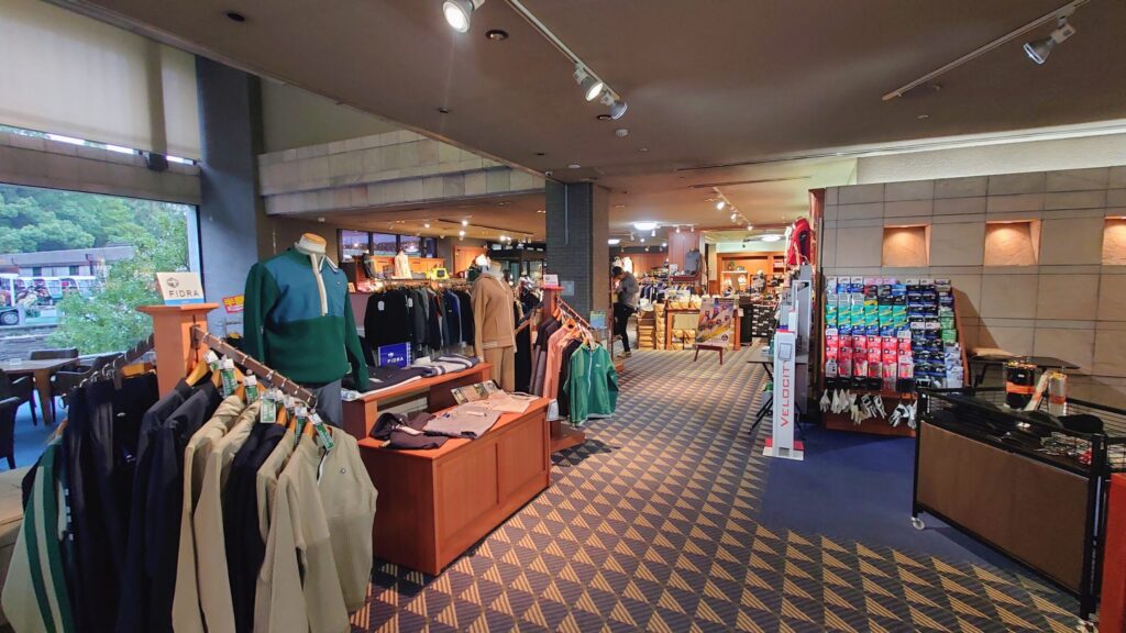 クラブハウス内のショップは、ゴルフ用品を中心に品揃えが豊富で、急な買い足しや記念グッズ選びにも最適。
