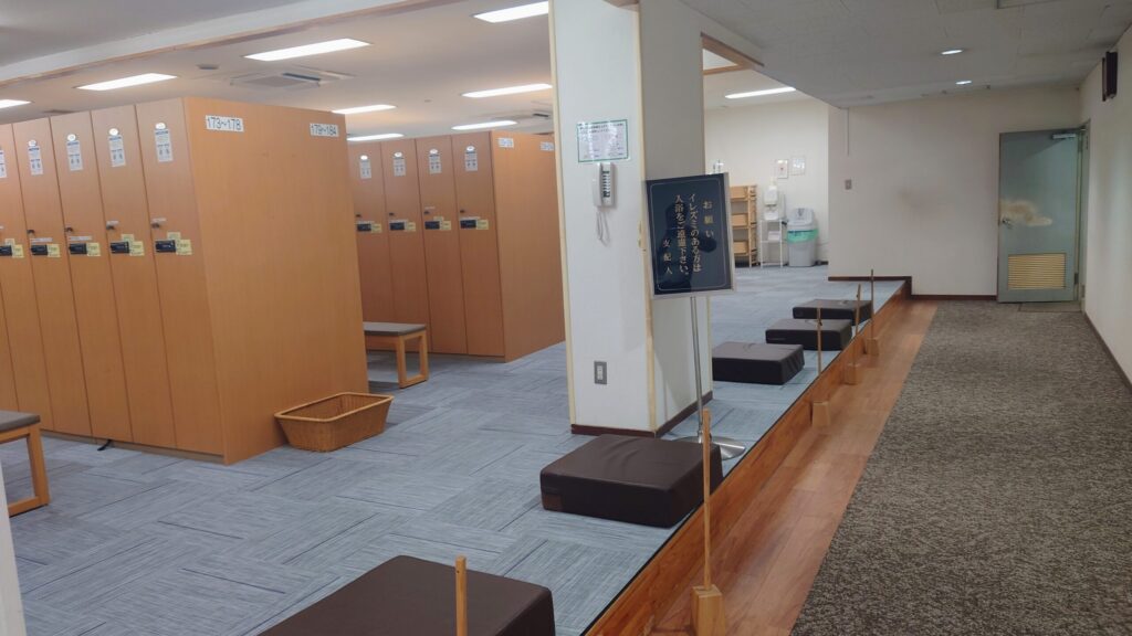 しっかりと土足禁止の案内があり、清潔感が保たれています。