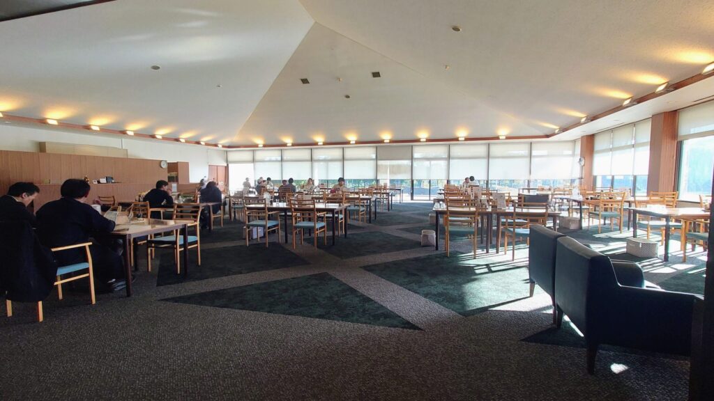 広々としたレストランは、大きな窓から自然光が差し込み、天井も高くてとても開放的。
