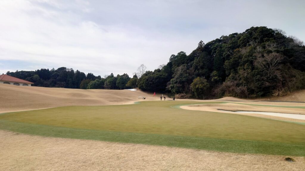 冬芝は短く、グリーン周りのラフも薄いためボールが浮かず、アプローチの難易度は高め。