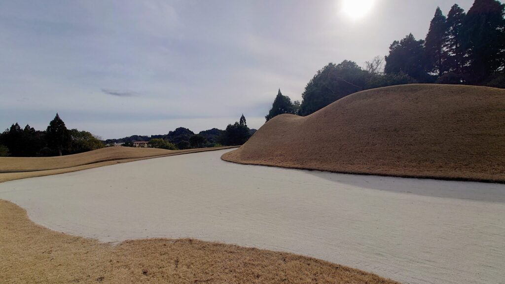 フェアウェイでもアンジュレーションがあり、アップダウン・ドッグレッグ・谷越え・池絡みが随所に配置され、同じようなホールが一つもない印象です。