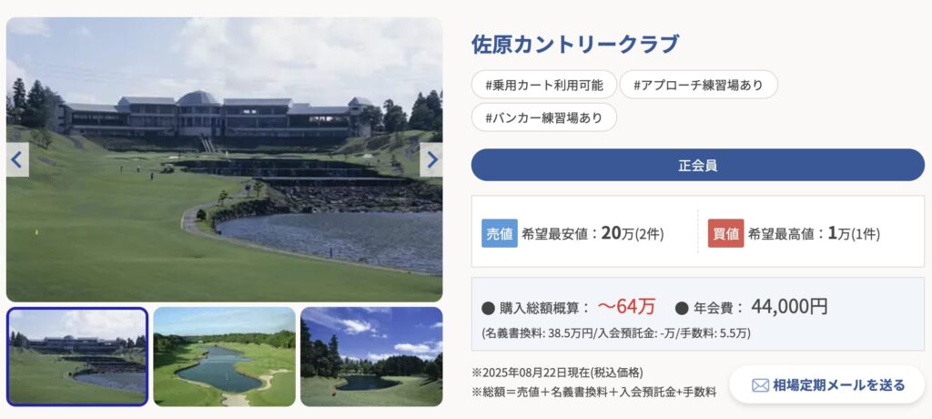 会員権情報(佐原カントリークラブ)の費用